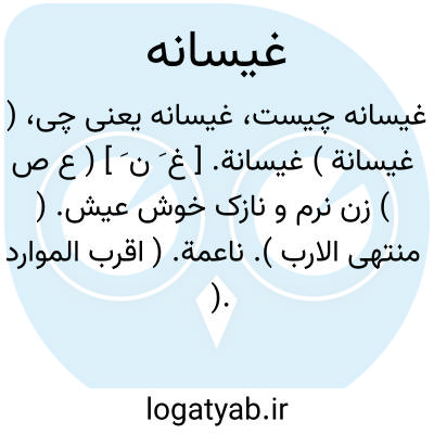 لغت نامه دهخدا ( غیسانة ) غیسانة. [ غ َ ن َ ] ( ع ص ) زن نرم و نازک خوش عیش. ( منتهی الارب ). ناعمة. ( اقرب الموارد ).