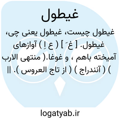 غیطول. [ غ َ ] ( ع اِ ) آوازهای آمیخته باهم، و غوغا.( منتهی الارب ) ( آنندراج ) ( از تاج العروس ). || تاریکی برهم نشسته. تاریکی. ( منتهی الارب ) ( آنندراج ). ظلمت متراکم. ج، غَیاطیل. ( از اقرب الموارد ).
