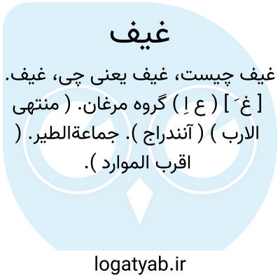غیف. [ غ َ ] ( ع اِ ) گروه مرغان. ( منتهی الارب ) ( آنندراج ). جماعةالطیر. ( اقرب الموارد ).