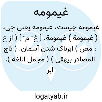 ( غیمومة ) غیمومة. [ غ َ م َ ] ( از ع، مص ) ابرناک شدن آسمان. ( تاج المصادر بیهقی ) ( مجمل اللغة ). ابر داشتن آسمان. ابری بودن. این لغت در فرهنگهای معتبر عربی دیده نشد.