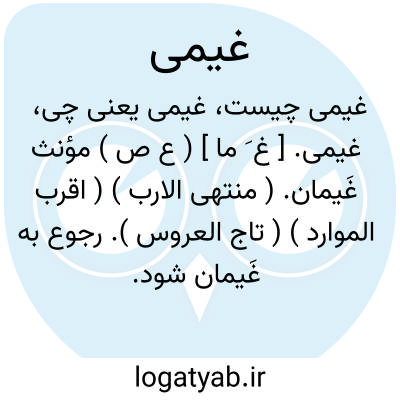 غیمی. [ غ َ ما ] ( ع ص ) مؤنث غَیمان. ( منتهی الارب ) ( اقرب الموارد ) ( تاج العروس ). رجوع به غَیمان شود.