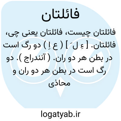فائلتان. [ ءِ ل َ ] ( ع اِ ) دو رگ است در بطن هر دو ران. ( آنندراج ). دو رگ است در بطن هر دو ران و محاذی همدیگر، او مضغتان من لحم اسفلها علی الصلوین من لدن ادنی الحجبتین مکتنفاالعصعص منحدرتان فی جانبی الفخذین و هما من الفرس کذلک و فال لغة فیه. ( منتهی الارب ). و رجوع به فال شود.