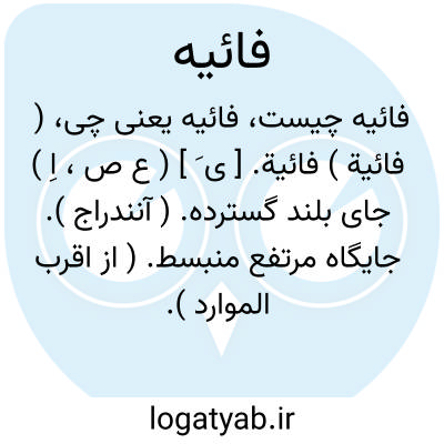 ( فائیة ) فائیة. [ ی َ ] ( ع ص، اِ ) جای بلند گسترده. ( آنندراج ). جایگاه مرتفع منبسط. ( از اقرب الموارد ).