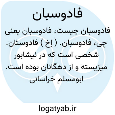 فادوسبان. ( اِخ ) فادوستان. شخصی است که در نیشابور میزیسته و از دهگانان بوده است. ابومسلم خراسانی بنابر روایتی که صاحب روضةالصفا آورده از این مرد شمشیری و هزار دینار به قرض گرفت و هنگامی که بر خراسان چیره شد این دهقان را سزاهای نیکو داد. رجوع به احوال و اشعار رودکی ج 1 ص 291 شود. فادوسبان. ( اِخ ) یکی از ملوک رستمدار طبرستان. رجوع به پادوسبان شود.