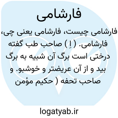 فارشامی. ( اِ ) صاحب طب گفته درختی است برگ آن شبیه به برگ بید و از آن عریضتر و خوشبو. و صاحب تحفه ( حکیم مؤمن ) نوشته که اندرطون است، و صاحب منهاج گفته جهت تفتیح سدد احشا و اوجاع نافع است. ( فهرست مخزن الادویه ).