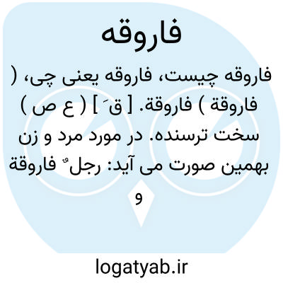 ( فاروقة ) فاروقة. [ ق َ ] ( ع ص ) سخت ترسنده. در مورد مرد و زن بهمین صورت می آید: رجل ٌ فاروقة و امراءةٌ فاروقة. ( منتهی الارب ).