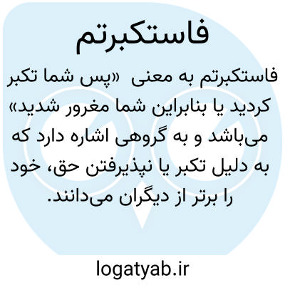 کلمه‌ی «فاستکبرتم» از زبان عربی است و به صورت ترکیبی از سه بخش ساخته شده است: «فـ» (پس، بنابراین)، «استکبر» (عظمت‌طلبی کرد، تکبر کرد) و «تم» (شما). بنابراین معنی کلی این واژه می‌شود: «پس شما تکبر کردید» یا «بنابراین شما مغرور شدید». این واژه غالباً در متون دینی، قرآنی یا ادبیات کلاسیک عربی به کار می‌رود و نشان‌دهنده رفتاری است که با غرور و خودبینی همراه است.