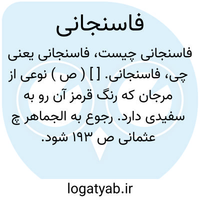 لغت نامه دهخدا فاسنجانی. [ ] ( ص ) نوعی از مرجان که رنگ قرمز آن رو به سفیدی دارد. رجوع به الجماهر چ عثمانی ص 193 شود.