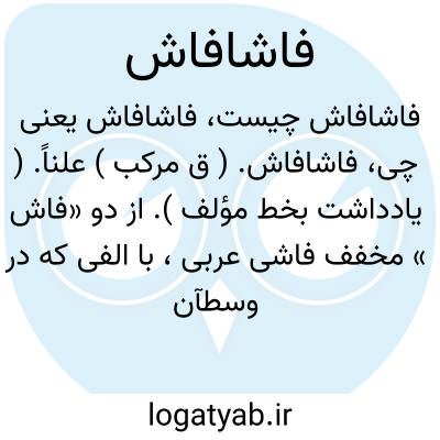 فاشافاش. ( ق مرکب ) علناً. ( یادداشت بخط مؤلف ). از دو «فاش » مخفف فاشی عربی، با الفی که در وسطآن افزوده اند، مثل سراسر. این ترکیب فقط در فارسی وبیشتر در تداول عام به کار رود. رجوع به فاش شود.