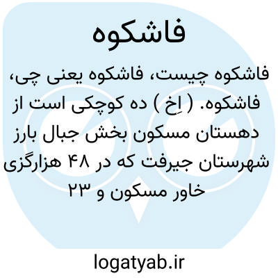 فاشکوه. ( اِخ ) ده کوچکی است از دهستان مسکون بخش جبال بارز شهرستان جیرفت که در 48 هزارگزی خاور مسکون و 23 هزارگزی خاور راه شوسه بم به سبزواران واقع است. سکنه آن 30 تن است. مزارع جوزوئیه، نارنج قلعه و شیران جزء این ده است. ساکنان از طایفه خواخه هستند. ( از فرهنگ جغرافیایی ایران ج 8 ).