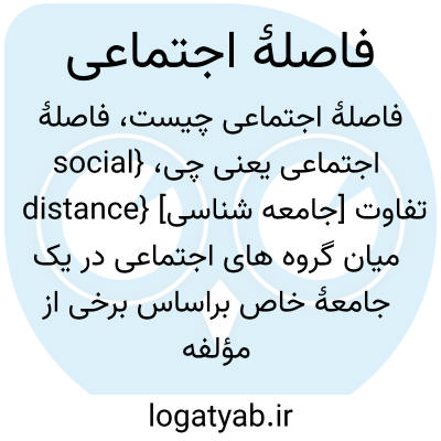{social distance} [جامعه شناسی] تفاوت میان گروه های اجتماعی در یک جامعۀ خاص براساس برخی از مؤلفه های ازپیش تعیین شده و قابل اندازه گیری