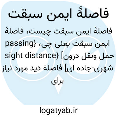 {passing sight distance} [حمل ونقل درون شهری-جاده ای] فاصلۀ دید مورد نیاز برای سبقت گرفتن ایمن در یک جادۀ دوخطۀ دوطرفه