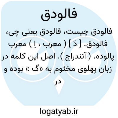 فالودق. [ دَ ] ( معرب، اِ ) معرب پالوده. ( آنندراج ). اصل این کلمه در زبان پهلوی مختوم به «گ » بوده و در تعریب به قاف و گاه به جیم بدل شده است. رجوع به پالوده شود.