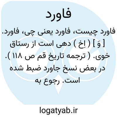 لغت نامه دهخدا فاورد. [ وَ ] ( اِخ ) دهی است از رستاق خوی. ( ترجمه تاریخ قم ص 118 ). در بعض نسخ جاورد ضبط شده است. رجوع به جاورد شود.