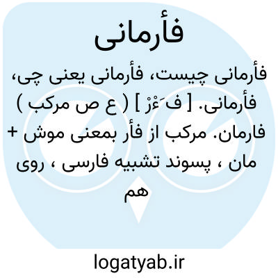 فأرمانی. [ ف َءْرْ ] ( ع ص مرکب ) فارمان. مرکب از فأر بمعنی موش + مان، پسوند تشبیه فارسی، روی هم یعنی چیزی که شبیه موش باشد. ( دزی ج 2 ص 236 از لطایف ثعالبی ).
