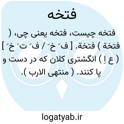 ( فتخة ) فتخة. [ ف َ خ َ / ف َ ت َ خ َ ] ( ع اِ ) انگشتری کلان که در دست و پا کنند. ( منتهی الارب ). حد فاصل انگشتان سبابه و ابهام انگشتری نقره بی نگین است، و اگر در آن نگین باشد خاتم است. ج، فَتَخ، فُتوخ، فَتَخات. ( منتهی الارب ) ( اقرب الموارد ).