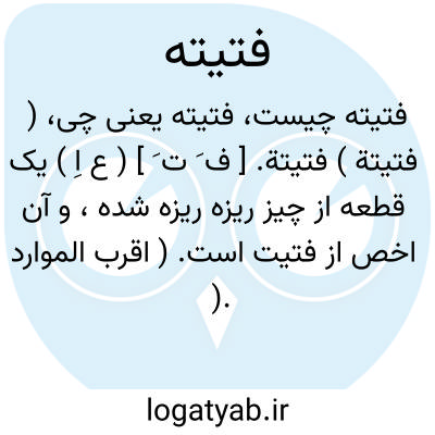 لغت نامه دهخدا ( فتیتة ) فتیتة. [ ف َ ت َ ] ( ع اِ ) یک قطعه از چیز ریزه ریزه شده، و آن اخص از فتیت است. ( اقرب الموارد ). رجوع به فتیت شود.