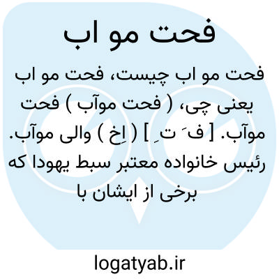 ( فحت موآب ) فحت موآب. [ ف َ ت ِ ] ( اِخ ) والی موآب. رئیس خانواده معتبر سبط یهودا که برخی از ایشان با زور به بابل مراجعت نمودند. ( از قاموس کتاب مقدس ).