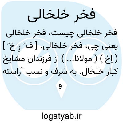 فخر خلخالی. [ ف َ رِ خ َ ] ( اِخ ) ( مولانا... ) از فرزندان مشایخ کبار خلخال. به شرف و نسب آراسته و به زیور طبع سلیم پیراسته. و طبع نظم نیکو دارد. این غزل از اوست: