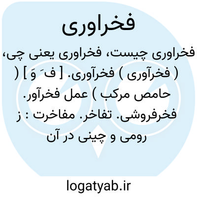 فخرآوری.[ ف َ وَ ] ( اِخ ) دهی است از دهستان حیات داود بخش گناوه شهرستان شیراز که در 20 هزارگزی خاور گناوه قرار دارد. جلگه ای معتدل و مرطوب و دارای 300 تن سکنه است. آب آنجا از چاه و محصول عمده اش غلات و خرما و شغل اهالی زراعت است. ( از فرهنگ جغرافیایی ایران ج 7 ).