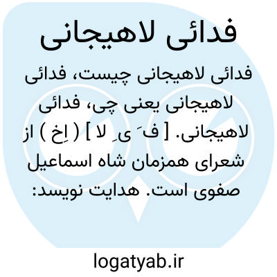 فدائی لاهیجانی. [ ف َ ی ِ لا ] ( اِخ ) از شعرای همزمان شاه اسماعیل صفوی است. هدایت نویسد: خلف الصدق شیخ محمد لاهیجی شارح گلشن راز شبستری است و بنابراین او را شیخ زاده می خواندند. از جانب شاه اسماعیل صفوی به رسالت نزد محمدخان شیبانی رفته، آخرالامر عزلت گزیده و در شیراز فوت شده است. از اشعار اوست: