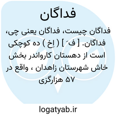 فداگان. [ ف َ ] ( اِخ ) ده کوچکی است از دهستان کارواندر بخش خاش شهرستان زاهدان، واقع در 57 هزارگزی جنوب باختری خاش و 5 هزارگزی شمال شوسه خاش به ایرانشهر. دارای 25 تن سکنه است. ( از فرهنگ جغرافیایی ایران ج 8 ).