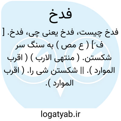 لغت نامه دهخدا فدخ. [ ف َ] ( ع مص ) به سنگ سر شکستن. ( منتهی الارب ) ( اقرب الموارد ). || شکستن شی را. ( اقرب الموارد ).
