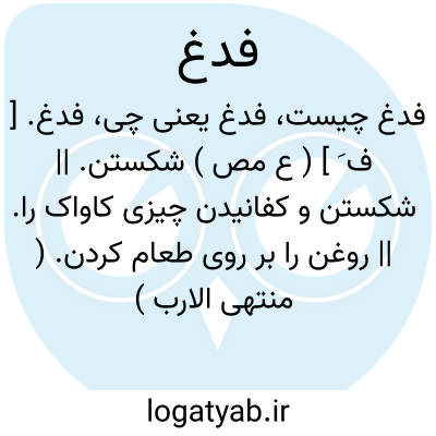 لغت نامه دهخدا فدغ. [ ف َ ] ( ع مص ) شکستن. || شکستن و کفانیدن چیزی کاواک را. || روغن را بر روی طعام کردن. ( منتهی الارب ) ( اقرب الموارد ).فدغ. [ ف َ دَ ] ( ع اِمص ) خمیدگی است در کف پا. ( منتهی الارب ). رجوع به فَدَع شود.