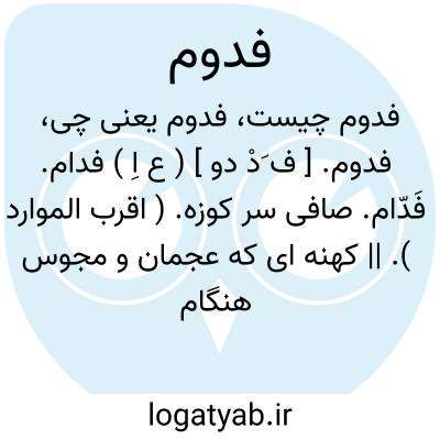فدوم. [ ف َدْ دو ] ( ع اِ ) فدام. فَدّام. صافی سر کوزه. ( اقرب الموارد ). || کهنه ای که عجمان و مجوس هنگام آب خوردن بر دهان بندند. ( اقرب الموارد ). دهان بند عجمیان. ( آنندراج ). فدام. فَدّام، و آن چیزی است که مجوس گاه آشامیدن بر دهان بندند. ( یادداشت بخط مؤلف ).