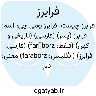اسم: فرابرز (پسر) (فارسی) (تاریخی و کهن) (تلفظ: farāborz) (فارسی: فَرابرز) (انگلیسی: faraborz)