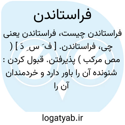 لغت نامه دهخدا فراستاندن. [ ف َ س ِ دَ ] ( مص مرکب ) پذیرفتن. قبول کردن: شنونده آن را باور دارد و خردمندان آن را بشنوند و فراستانند. ( تاریخ بیهقی ). پادشاهان در وقت، چنین تقربها فراستانند. ( تاریخ بیهقی ). || ستدن. گرفتن. فراستدن. رجوع به فرا شود.