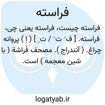 فراسته. [ ف َ ت َ / ت ِ ] ( اِ ) پروانه چراغ. ( آنندراج ). مصحف فَراشة ( با شین معجمه ) است. رجوع به فَراشة شود.