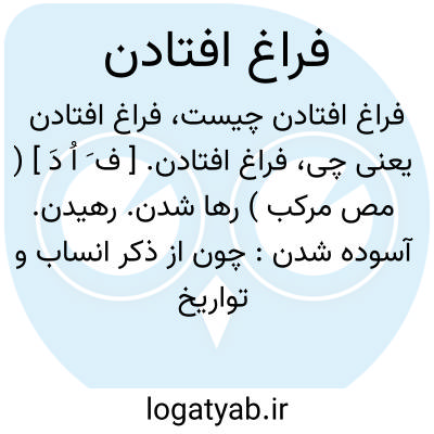فراغ افتادن. [ ف َ اُ دَ ] ( مص مرکب ) رها شدن. رهیدن. آسوده شدن: چون از ذکر انساب و تواریخ فرس فراغ افتاد... ( فارسنامه ابن بلخی ). رجوع به فراغ شود.