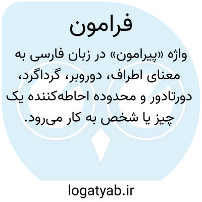 واژه «پیرامون» در زبان فارسی به معنای اطراف، دوروبر، گرداگرد، دورتادور و محدوده احاطه‌کننده یک چیز یا شخص به کار می‌رود. این کلمه که در فارسی باستان نیز ریشه دارد، در طول زمان معنای گسترده‌تری یافته و امروزه علاوه بر کاربرد مکانی، در مفاهیم انتزاعی نیز مورد استفاده قرار می‌گیرد. «پیرامون» می‌تواند به فضای اطراف یک شیء، محیط فکری یا اجتماعی یک فرد، یا حتی مباحث مرتبط با یک موضوع تخصصی اشاره داشته باشد.