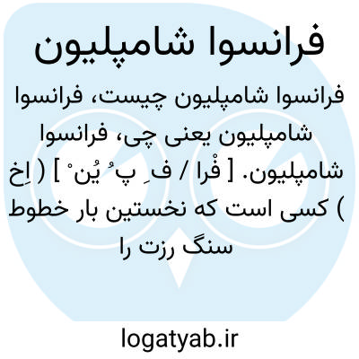 فرانسوا شامپلیون. [ فْرا / ف ِ پ ُ یُن ْ ] ( اِخ ) کسی است که نخستین بار خطوط سنگ رزت را خواند و برای خواندن آن به مطالعه زبان قبطی و تاریخ مصر پرداخت. وی از شرق شناسانی است که وجودش در تحقیق تاریخ مصر قدیم بسیار سودمند بوده است. رجوع به ایران باستان ج 1 ص 42 و شامپولیون شود.