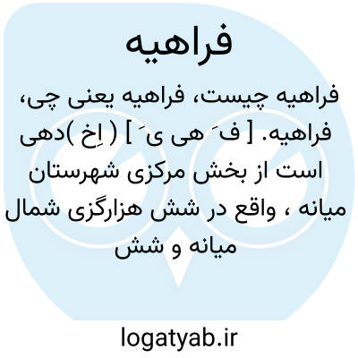 فراهیه. [ ف َ هی ی َ ] ( اِخ )دهی است از بخش مرکزی شهرستان میانه، واقع در شش هزارگزی شمال میانه و شش هزارگزی شوسه تبریز به میانه. ناحیه ای است کوهستانی و معتدل و دارای 114 تن سکنه. از رودخانه محلی مشروب میشود. محصولاتش غلات، حبوب و بزرک است. اهالی به کشاورزی و گله داری گذران میکنند.راه مالرو دارد. ( از فرهنگ جغرافیایی ایران ج 4 ).
