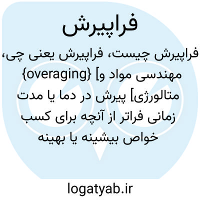 {overaging} [مهندسی مواد و متالورژی] پیرش در دما یا مدت زمانی فراتر از آنچه برای کسب خواص بیشینه یا بهینه لازم است