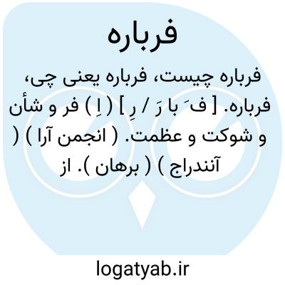 فرباره. [ ف َ با رَ / رِ ] ( اِ ) فر و شأن و شوکت و عظمت. ( انجمن آرا ) ( آنندراج ) ( برهان ). از برساخته های دساتیر است. ( از حاشیه برهان چ معین ).