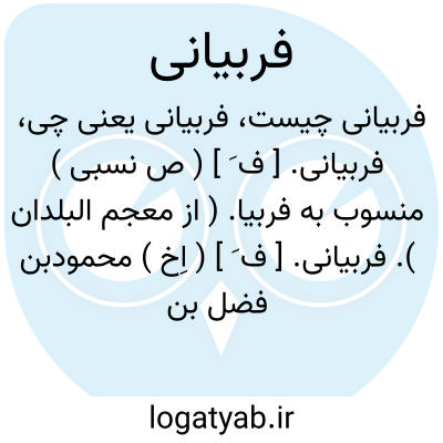 لغت نامه دهخدا فربیانی. [ ف َ ] ( ص نسبی ) منسوب به فربیا. ( از معجم البلدان ).فربیانی. [ ف َ ] ( اِخ ) محمودبن فضل بن حیدربن مطر فربیانی المطری، مکنی به ابی الغنائم. سلفی او رادیده و از او حدیث شنیده است. ( از معجم البلدان ).
