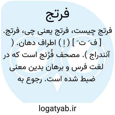 فرتج. [ ف َ ت َ ] ( اِ ) اطراف دهان. ( آنندراج ). مصحف فُرُنج است که در لغت فرس و برهان بدین معنی ضبط شده است. رجوع به فُرُنج شود.