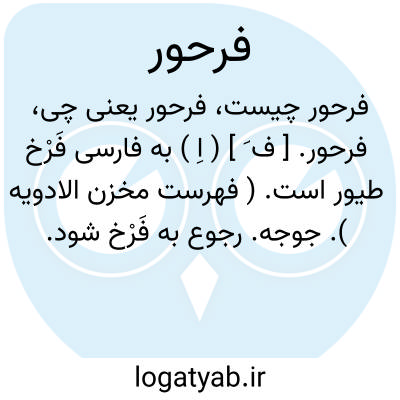 فرحور. [ ف َ ] ( اِ ) به فارسی فَرْخ طیور است. ( فهرست مخزن الادویه ). جوجه. رجوع به فَرْخ شود.