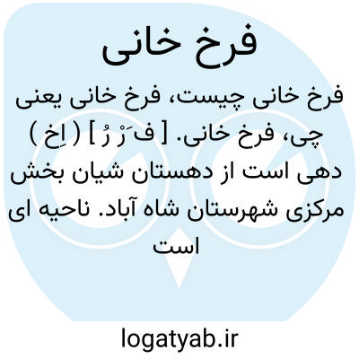 فرخ خانی. [ ف َرْ رُ ] ( اِخ ) دهی است از دهستان شیان بخش مرکزی شهرستان شاه آباد. ناحیه ای است واقعدر دشت، سردسیر و دارای 134 تن سکنه است. از قنات وچاه مشروب میشود. محصولاتش غلات، چغندر قند، صیفی و لبنیات است. اهالی به کشاورزی و گله داری گذران میکنند. راه فرعی به حسن آباد زبیری دارد. اکثر به گرمسیر قصر شیرین میروند. ( از فرهنگ جغرافیایی ایران ج 5 ).