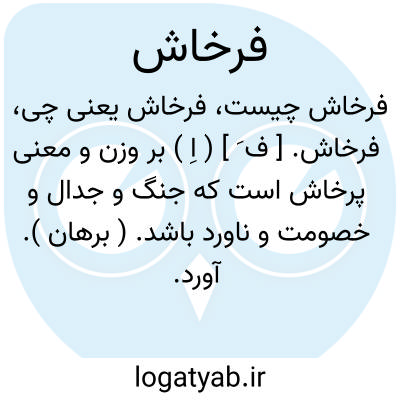 فرخاش. [ ف َ ] ( اِ ) بر وزن و معنی پرخاش است که جنگ و جدال و خصومت و ناورد باشد. ( برهان ). آورد. کارزار. پیکار. رزم. نبرد.هیجا. ( یادداشت به خط مؤلف ). رجوع به پرخاش شود.