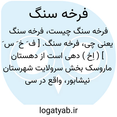 فرخه سنگ. [ ف َ خ َ س َ ] ( اِخ ) دهی است از دهستان ماروسک بخش سرولایت شهرستان نیشابور، واقع در سی هزارگزی جنوب خاوری چگینه بالا. ناحیه ای است کوهستانی، معتدل و دارای 25 تن سکنه. از قنات مشروب میشود. محصول آنجا غلات است. اهالی به کشاورزی گذران میکنند.راه مالرو دارد. ( از فرهنگ جغرافیایی ایران ج 9 ).