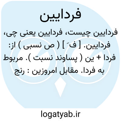 ( صفت ) ۱ - مربوط به فردا منسوب به فردا ۲ - بعدی آینده: عالم باقی مردم را سرای فردایین است.