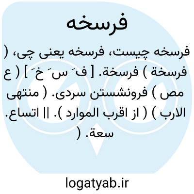 لغت نامه دهخدا ( فرسخة ) فرسخة. [ ف َ س َ خ َ ] ( ع مص ) فرونشستن سردی. ( منتهی الارب ) ( از اقرب الموارد ). || اتساع. سعة. ( اقرب الموارد ).