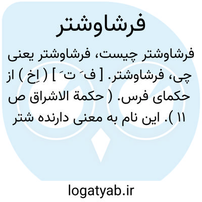 فرشاوشتر. [ ف َ ت َ ] ( اِخ ) از حکمای فرس. ( حکمة الاشراق ص 11 ). این نام به معنی دارنده شتر فرارونده یا راهوار است. فرشاوشتر یا فرشوشتر برادر جاماسب، وزیر کی گشتاسب است و چند بار در سرودهای گاتها یاد شده است. ( از فرهنگ ایران باستان پورداود ص 230 ). فراشاوشتر. فرشئوشتر. فرشوشتر.