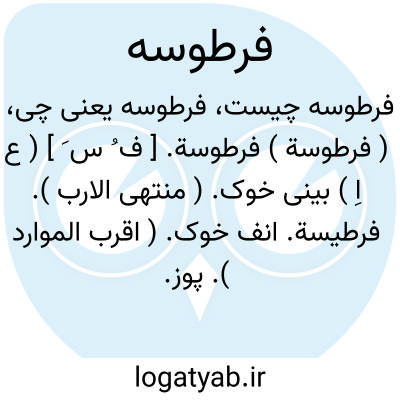 لغت نامه دهخدا ( فرطوسة ) فرطوسة. [ ف ُ س َ ] ( ع اِ ) بینی خوک. ( منتهی الارب ). فرطیسة. انف خوک. ( اقرب الموارد ). پوز. پوزه. ( از یادداشتهای مؤلف ). رجوع به فرطیسة شود.