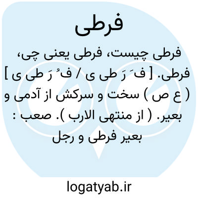 فرطی. [ ف َ رَ طی ی / ف ُ رَ طی ی ] ( ع ص ) سخت و سرکش از آدمی و بعیر. ( از منتهی الارب ). صعب: بعیر فرطی و رجل فرطی. ( از اقرب الموارد ).
