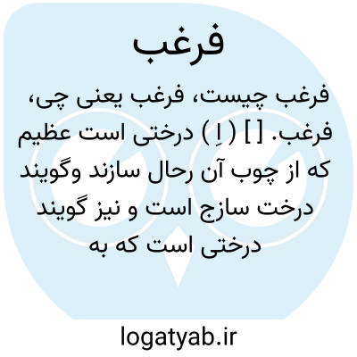 فرغب. [ ] ( اِ ) درختی است عظیم که از چوب آن رحال سازند وگویند درخت سازج است و نیز گویند درختی است که به هندوی ساکونه و ساکوان گویند. ( فهرست مخزن الادویه ).